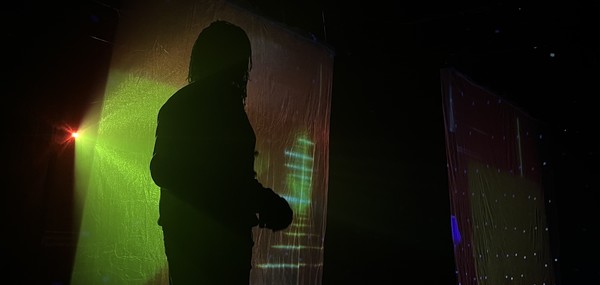 Weekly projects punctuate the artist’s research. His project Generative Dreams, an audiovisual journal, serves as a digital mirror to the analog expression of his states of consciousness since June 2020. This series enables him to deepen his expertise with tools essential to his practice—TouchDesigner and Ableton—while allowing space for improvisation. In Geneva to embrace the unknown, Noel follows routine wanderings between L’Abri – Carouge and L’Abri – Madeleine. The sounds he records and visuals he captures become markers of his explorations. This active contemplation, now a ritual, enriches his immersive research. Over the course of his three-month residency, the artist works to dissolve sound into the materiality of light, sculpting space to facilitate acts of immersion.