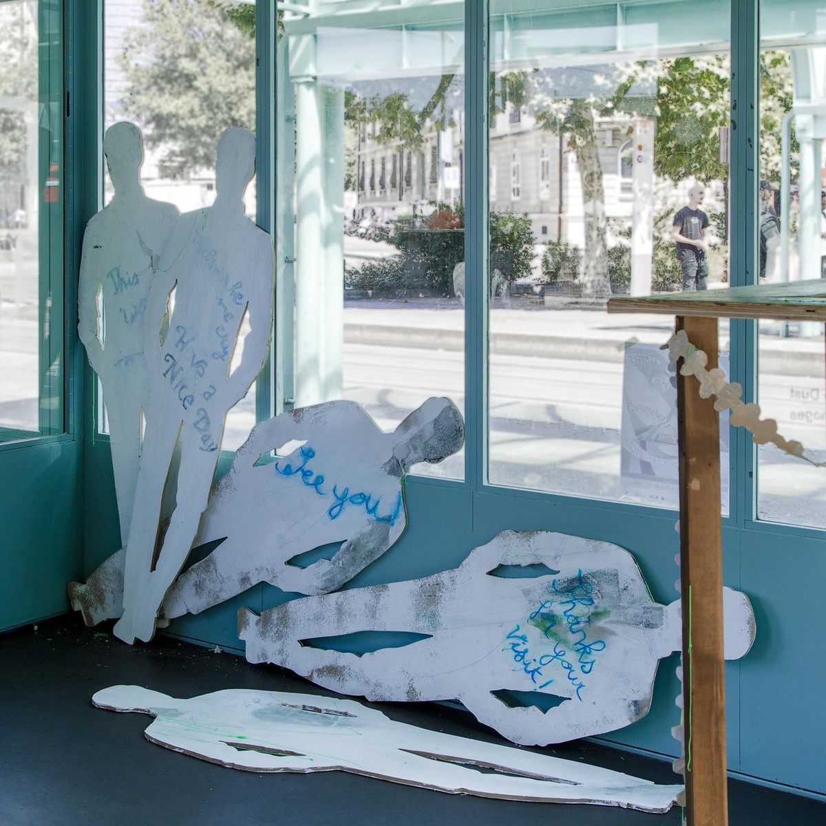 Agathe de Limoges est diplômée du Work.Master à la HEAD. Elle écrit des textes, drôles et grinçants qu’elle scande parfois de manière délinquante au public dans des installations fragiles. A travers sa pratique elle porte un regard sur les marges et l’absurdité du quotidien. Ses derniers textes parlent de pommes pourries, de langues qui lèchent, d’un bonheur bien organisé, d’espaces d’entre-deux, de poussière et de jauge de risque. En parallèle elle est co-fondatrice avec Montserrat Mayor l’espace d’art Le Trou, situé à Lancy, un white cube dans une ancienne fosse de garagiste.